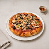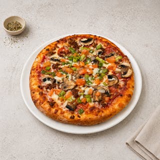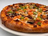Mushrooms, pepperoni, onions, sausage, green pepper, tomatoes, extra cheese.