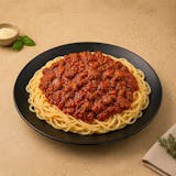 Lasagna topped with classic cheese, tomato sauce, and ground beef.