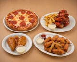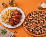 #4 - 25 Chicken Wings, Fries, 16'' Pizza with Two Toppings & Two 12 oz. Soda Special